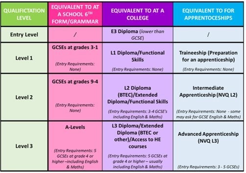 Apprenticeships: this is work based learning where pupils spend 20% of their time in college learning and 80% in the workplace. If your child is interested in an Apprenticeship they should register on the Government website: www.gov.uk/apply-apprenticeship. Apprenticeships are offered based on the level of experience and qualification.